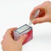 Gracias a su sistema autoentintable, la impresión es limpia y precisa, sin necesidad de tampón externo. El montaje de los caracteres es sencillo: se colocan sobre la placa ranurada utilizando la pinza incluida.