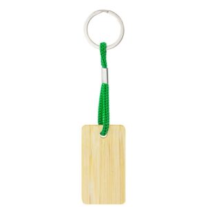 Llavero de bambú con cordón de colores, es una opción ecológica.