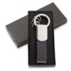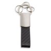 Llavero metálico con detalle de cinta en PU imitación a la fibra de carbono.