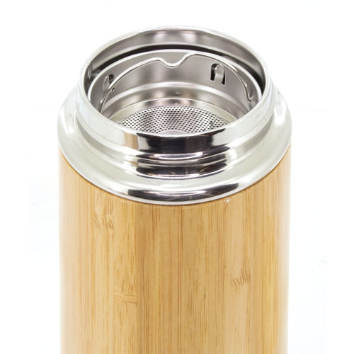 Realizado en bambú con doble cámara para mejor conservación, asa para transporte plegable e infusar.